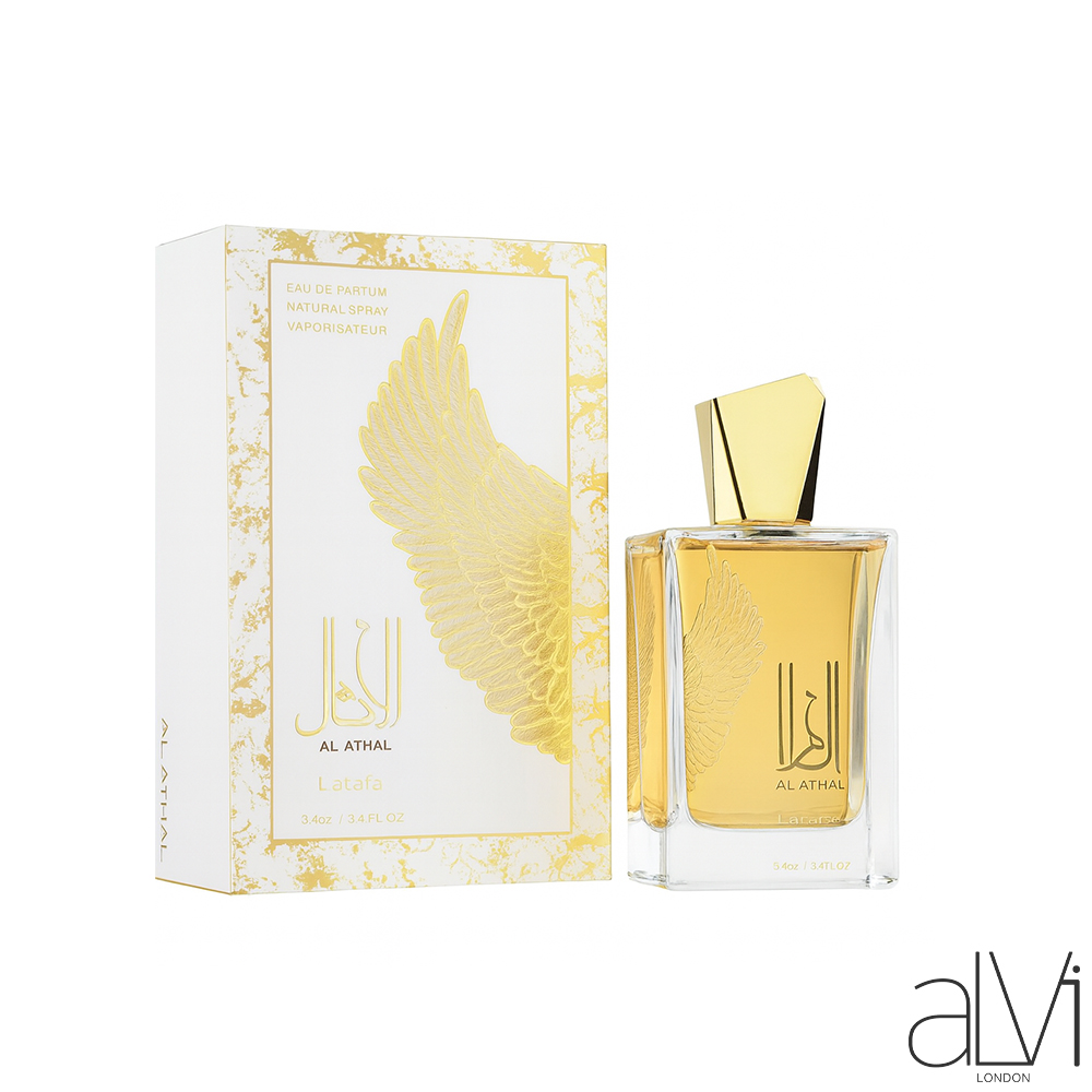 Lattafa Al Athal Eau de Parfum is a luxurious unisex fragrance, blending rich woods, amber, and spices for a deep, warm, and long-lasting oriental scent.