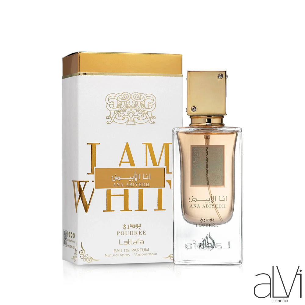 Lattafa Ana Abiyedh Poudree Eau de Parfum 60ml with Deodorant is a soft and elegant unisex fragrance that blends musk, powder, and floral notes for a clean, luxurious, and long-lasting scent.