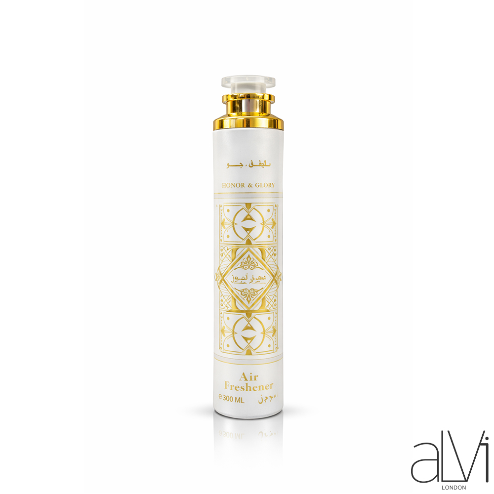 BADEE AL OUD HONOR & GLORY Air Freshener is a bold and luxurious Arabian fragrance spray inspired by the Honor & Glory scent style — warm, rich, and powerfully elegant. This premium air freshener blends sweet oriental accords with deep oud, amber warmth, and smooth woods to create a commanding and long-lasting aroma.