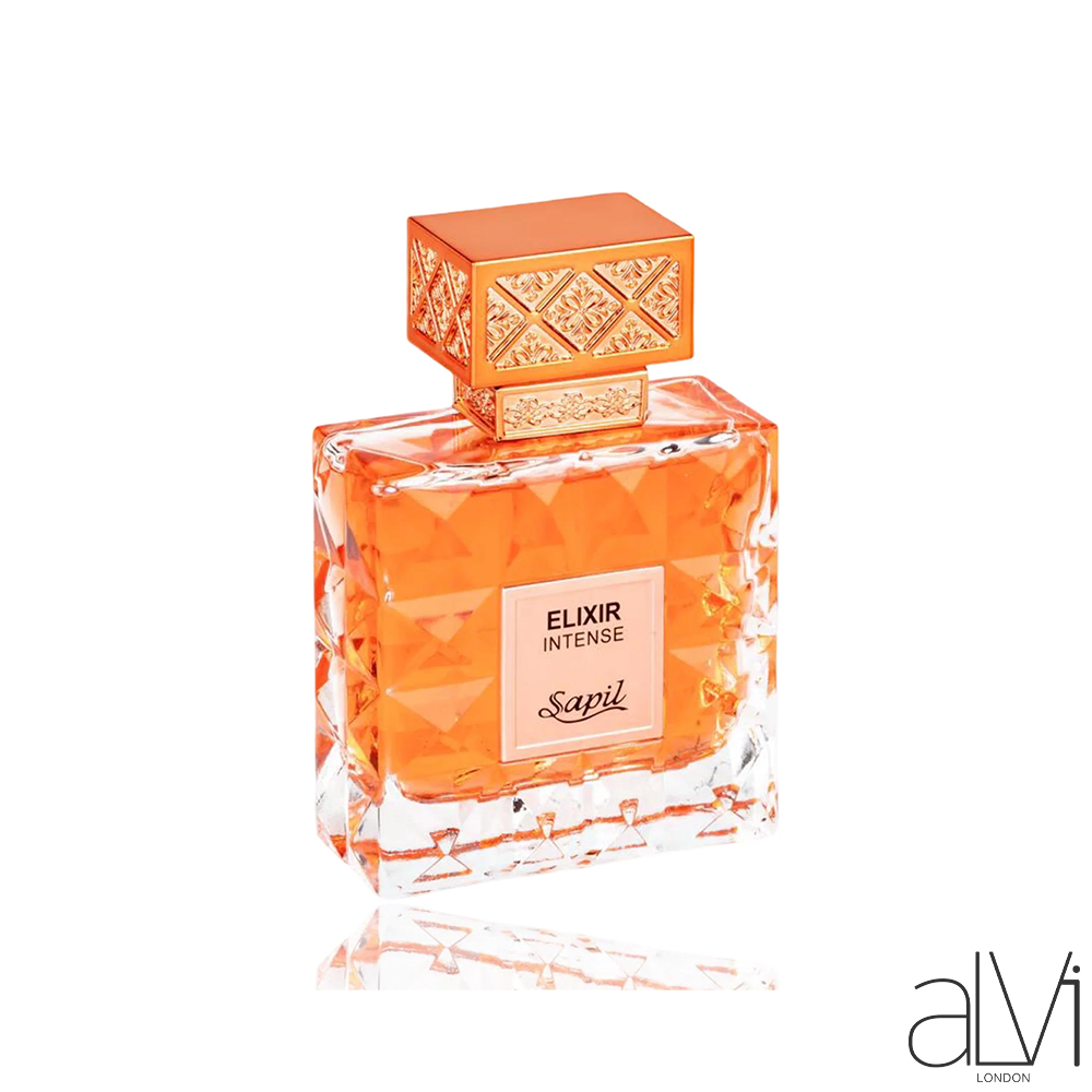 Elixir Intense Eau de Parfum 100ml by Sapil – A bold and intense masculine fragrance with spicy, woody, and amber notes. Long-lasting and perfect for evening wear.