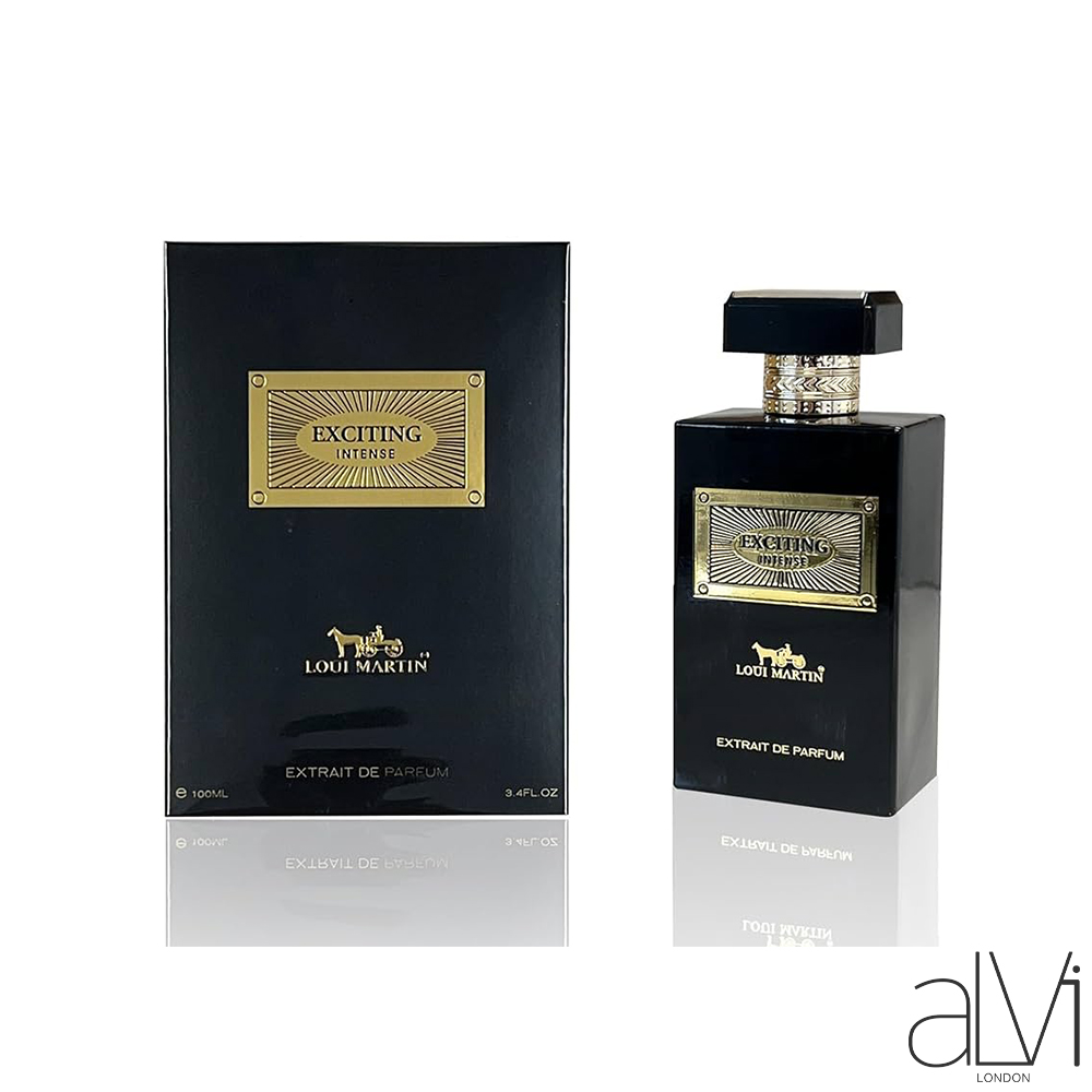 Exciting Intense 100ml by Loui Martin is a bold oriental-woody fragrance with spicy freshness and warm amber — a powerful, modern scent designed for confidence, energy, and lasting impact.