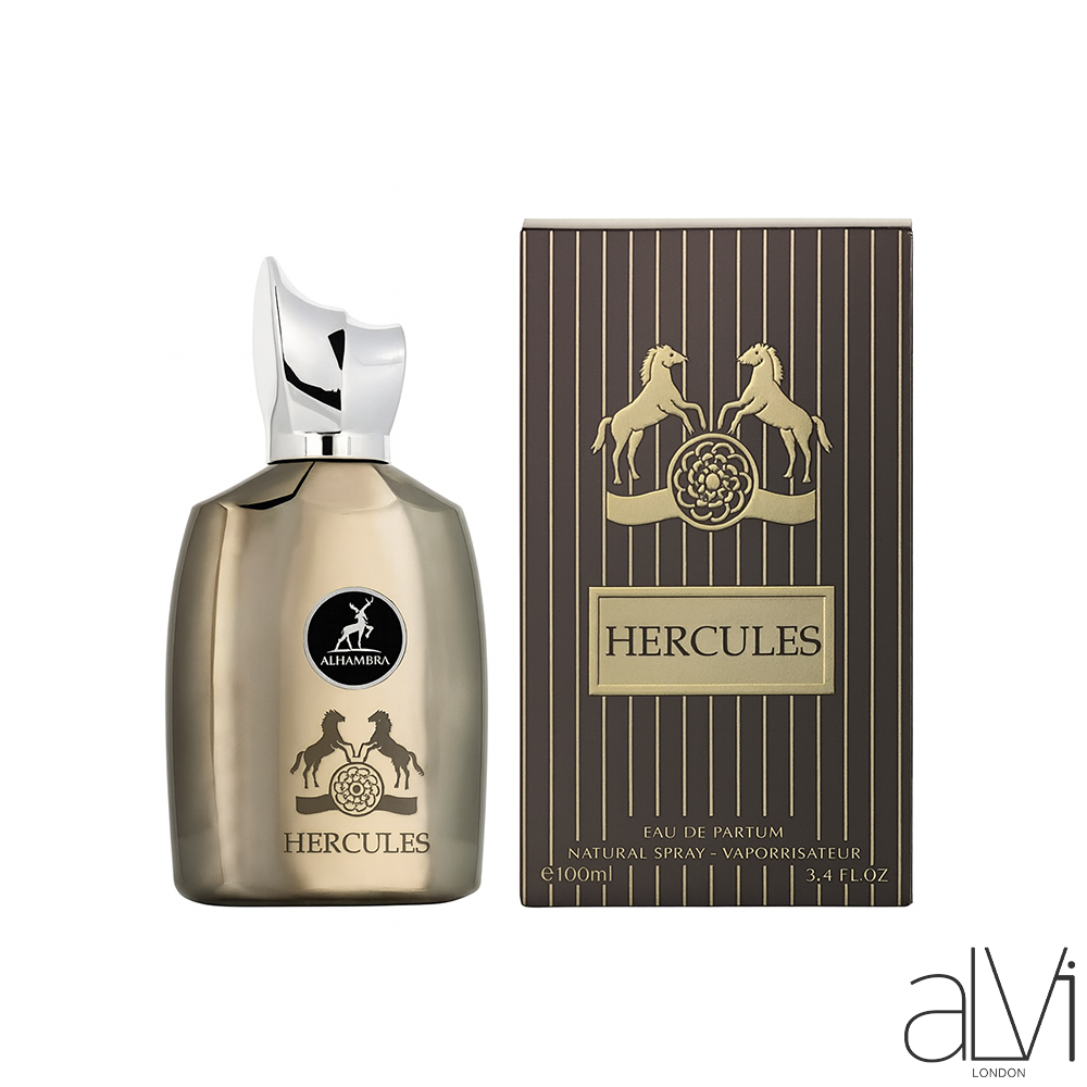Hercules Eau de Parfum is a powerful unisex fragrance, blending spices, amber, and woods for a bold, long-lasting scent with timeless elegance.