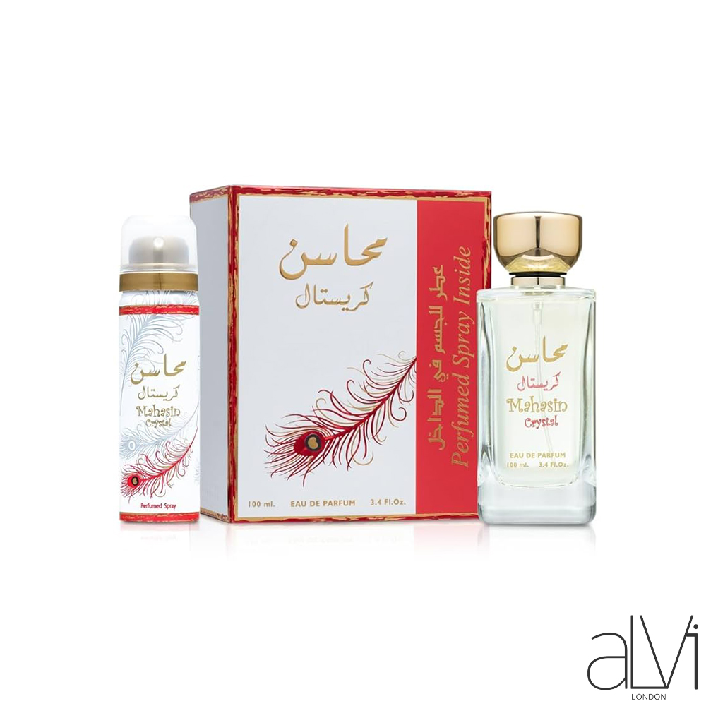 Accompanied by a matching deodorant spray, Mahasin Crystal offers a complete fragrance experience, ensuring all-day freshness and sophistication.
