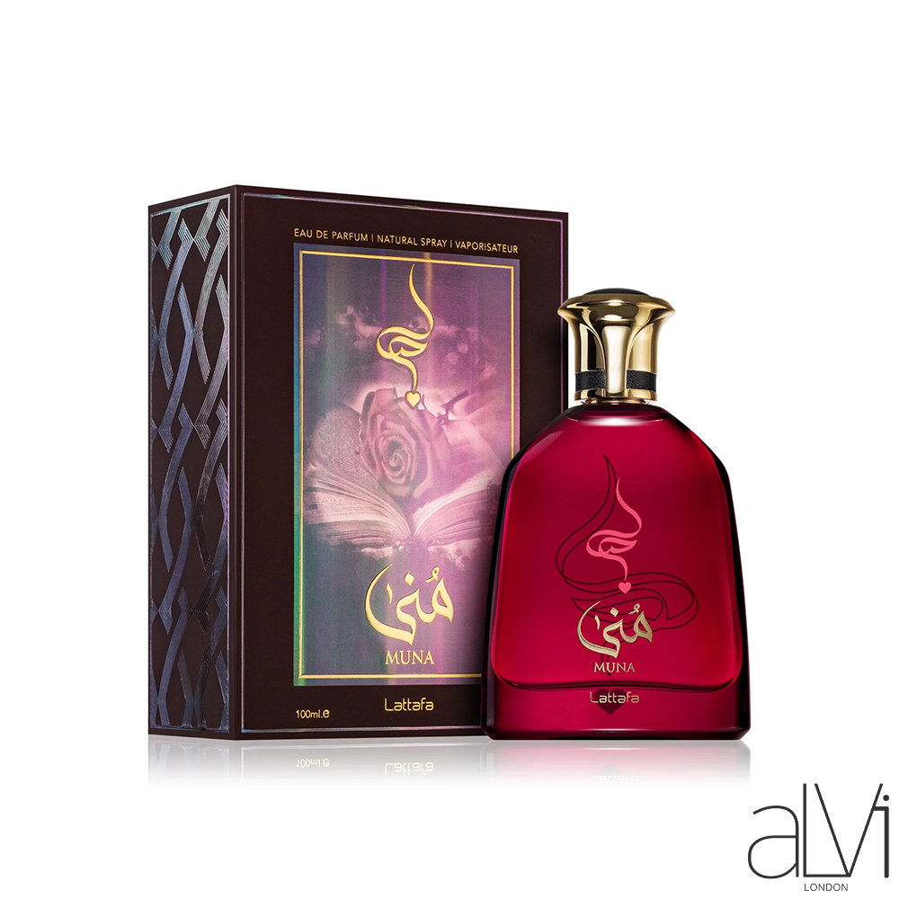 Lattafa Muna Eau de Parfum 100ml is a refined oriental-floral fragrance that combines sweet fruits, soft florals, and warm musky-amber notes, creating a sensual, long-lasting, and sophisticated scent.