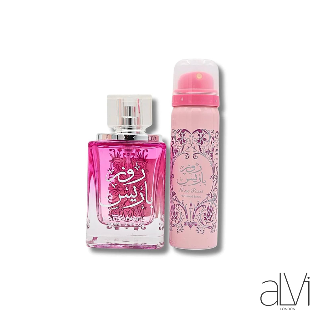 Rose Paris 100ml with Deo 50ml by Ard Al Zaafaran is a soft floral fragrance blending rose, musk, and subtle sweetness — paired with a matching deodorant for a fresh, elegant and feminine scent experience.