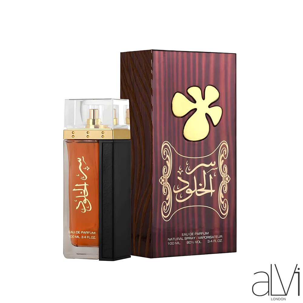 Ser Al Khulood Brown Eau de Parfum 100ml by Lattafa is a luxurious oriental fragrance with rich oud, warm amber, and spicy woods — an intoxicating scent that exudes depth, power, and timeless elegance.