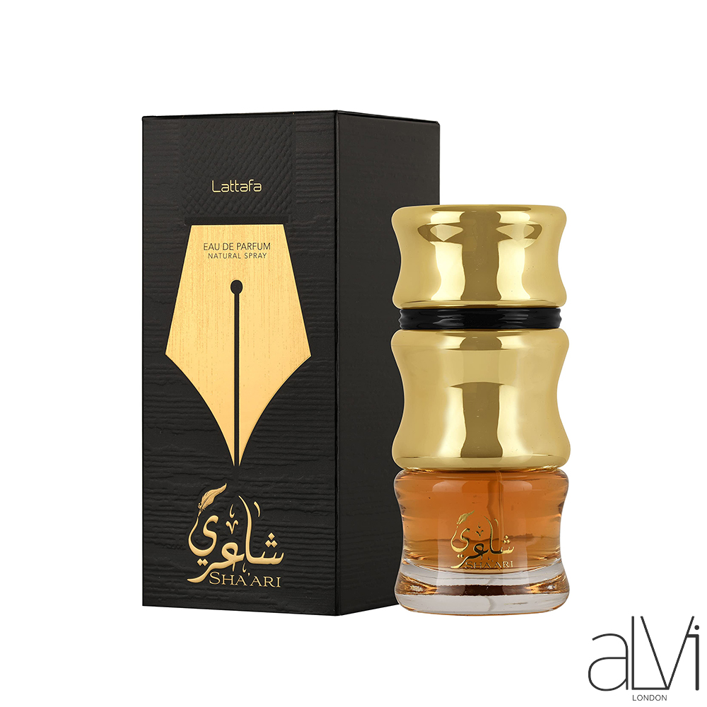 Sha’ari Eau de Parfum 100ml by Lattafa is an elegant oriental fragrance that combines warm woods, amber, and spice to create a smooth, long-lasting scent — refined, mysterious, and truly captivating.