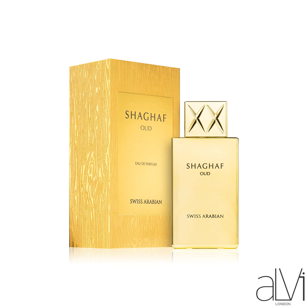 Shaghaf Oud 75ml by Swiss Arabian is a rich oriental-oud fragrance blending sweet praline, vanilla, and smoky oud — a warm, luxurious, and long-lasting scent that radiates passion, depth, and Arabian elegance.