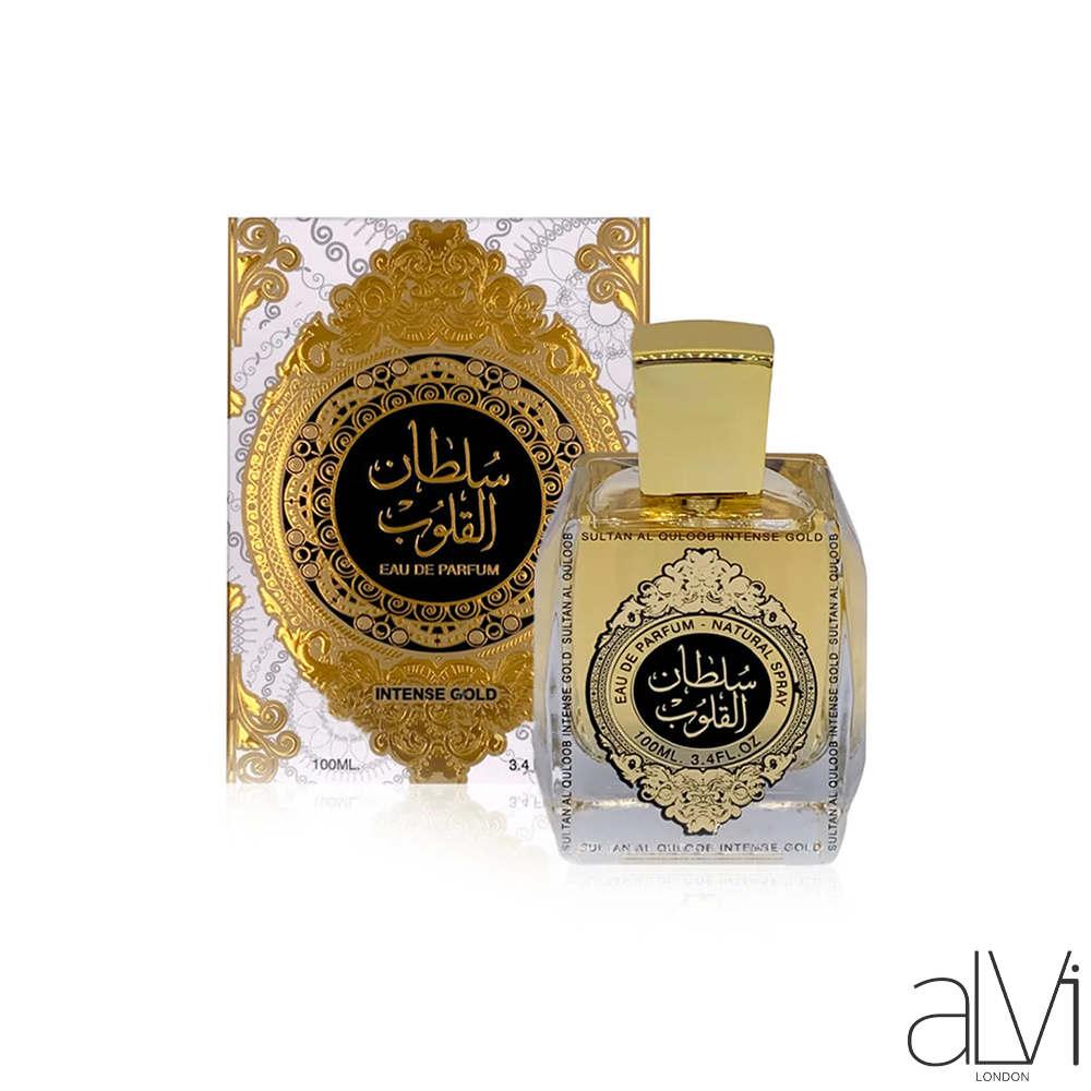 Sultan Al Quloob Intense Gold 100ml by Ard Al Zaafaran is a rich oriental-woody fragrance with deep oud, amber, and sweet warmth — a bold and luxurious scent that exudes strength and refined Arabian elegance.