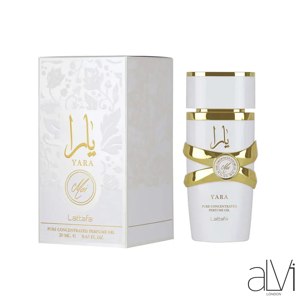 Yara Moi Concentrated Perfume Oil 20ml by Lattafa is a soft, elegant fragrance oil with creamy notes of peach, jasmine, and vanilla ? offering a long-lasting, sensual scent that exudes sophistication and charm.