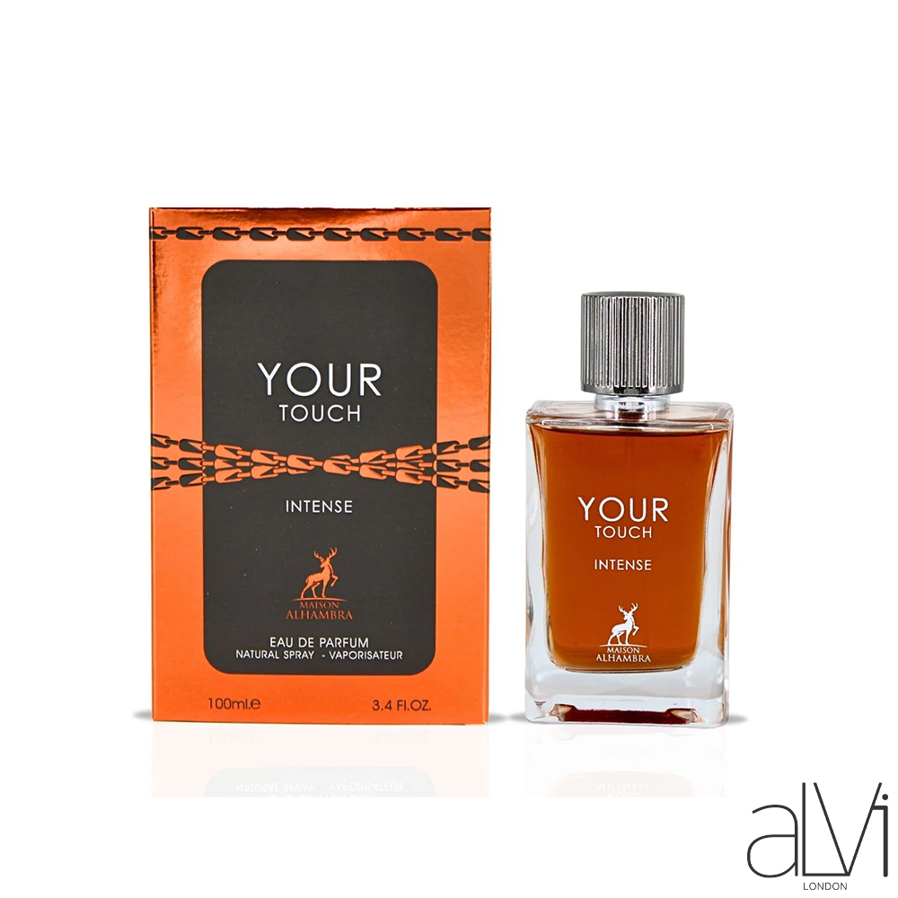 Your Touch Intense Eau de Parfum is a rich and powerful unisex fragrance, blending amber, woods, and spices for an elegant, bold, and long-lasting scent experience.
